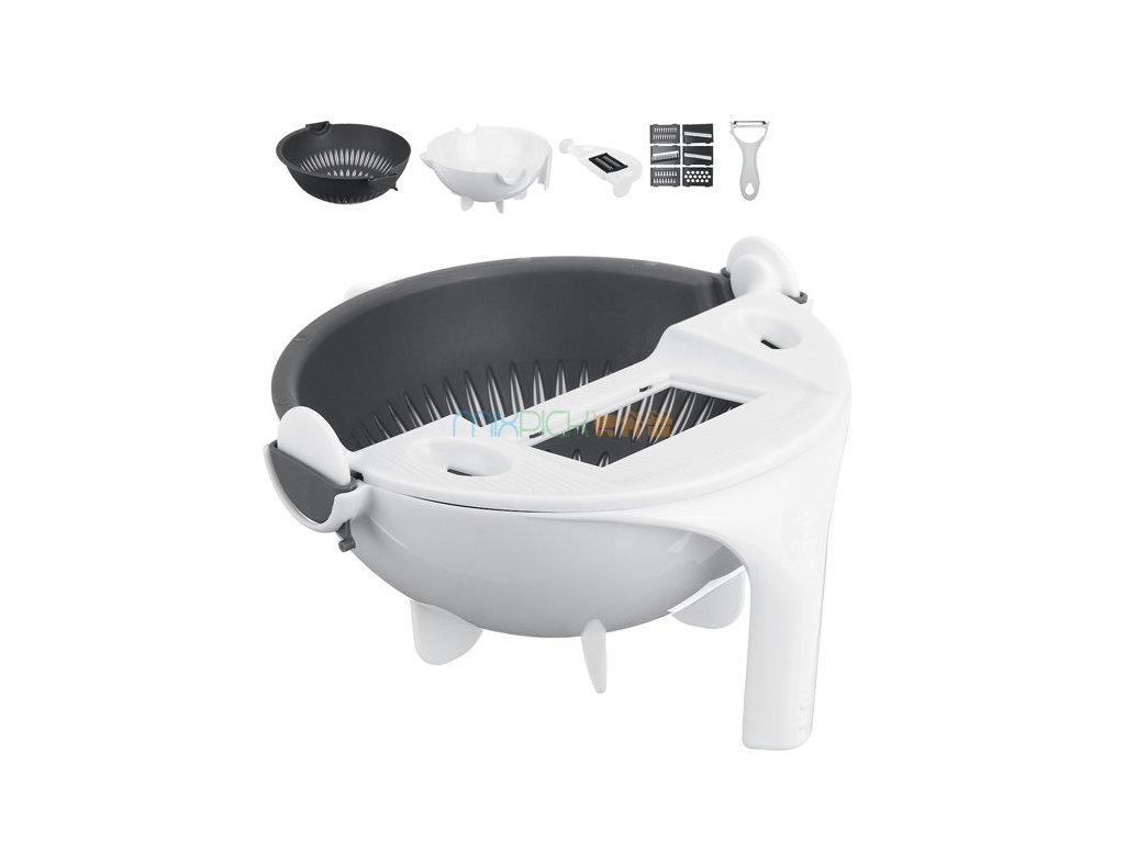 Kvalitný multifunkčný krájač na zeleninu a ovocie do každej domácnosti. Šikovný pomocník pre každého, pre rýchlu prípravu jedál a pokrmov. Pripraviť si čerstvú zeleninu a ovocie nebolo nikdy jednoduchšie. Ľahko nastrúhať, ľahko premyť vďaka dvojitej nádobe s cedidlom.