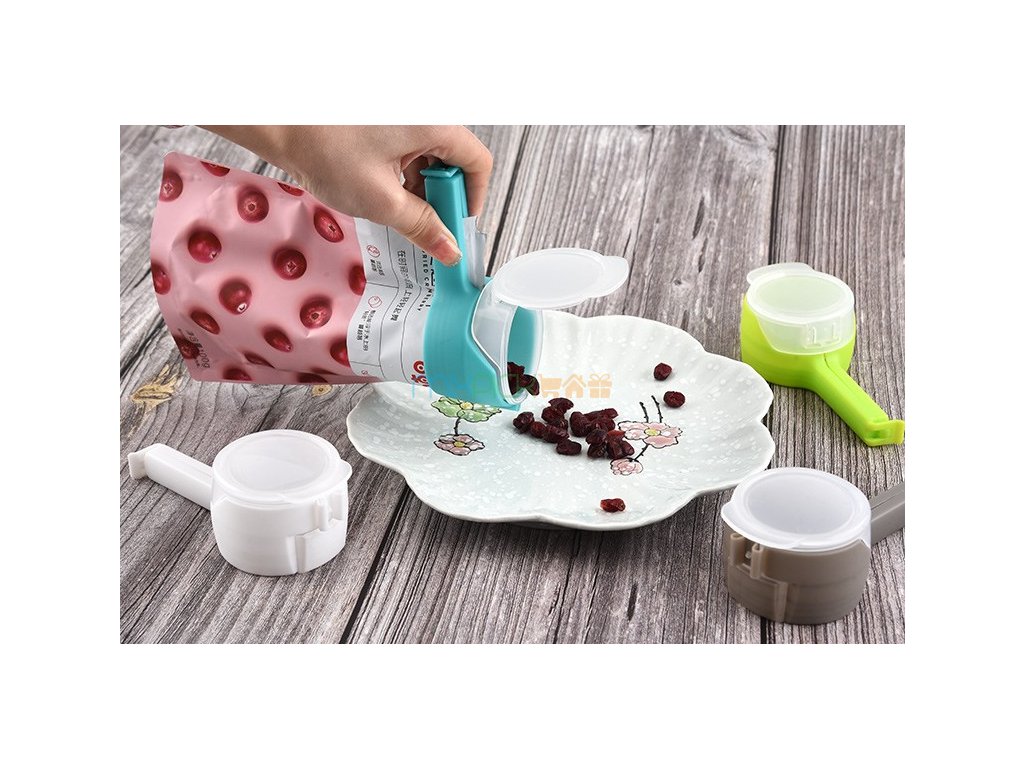 Uzatvárateľné spony s dávkovačom pre potraviny
